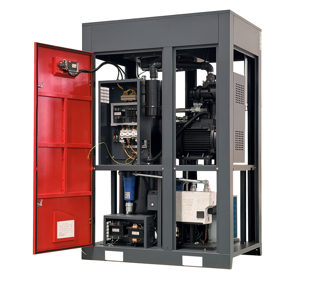 ACC integrated compressed air package includes a rotary screw compressor, refrigerated dryer, filters and a storage tank with minimal space requirement.
